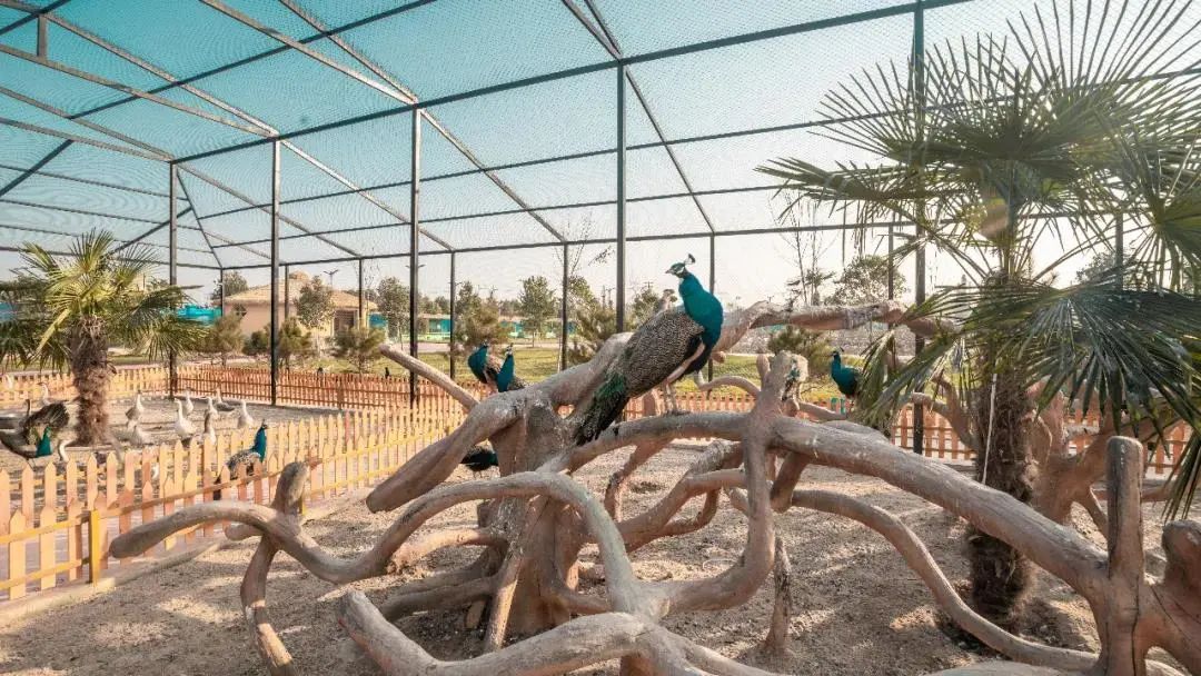 狮虎山、百鸟园、孔雀园天鹅湖、鳄鱼池、鹿苑