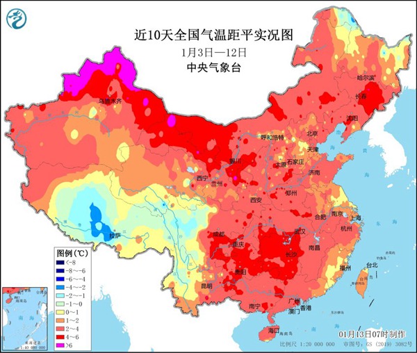 中国天气网 消息,最近这天气暖得都让大家忘了这是三九寒天了吧,看近10天气温距平实况图,这颜色看着就喜庆。