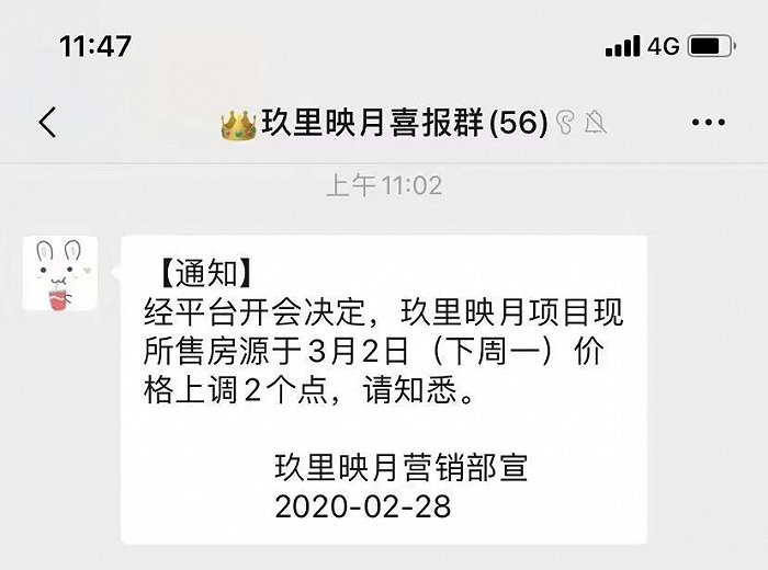 位于常州新北区美的阳光城江山樾项目也发出了调价通知,称从3月1日起,项目优惠收回1%,之后发布的优惠也会随时收回。