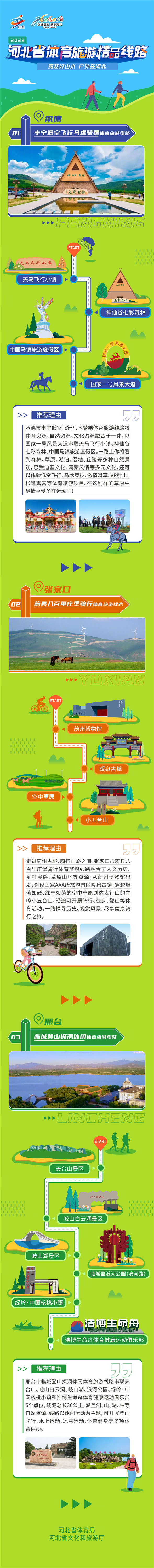 2023年“河北省体育旅游示范基地”和“河北省体育旅游精品线路”评定工作,涵盖了张家口、石家庄、唐山、廊坊、邢台以及承德等地市,汇聚了冰雪、山地、草原、河湖等自然生态资源,以及红色文化、满蒙风情等文化资源,涉及冰雪运动、山地运动、水上运动、航空运动、汽摩运动、房车露营、拓展训练、马术骑乘等领域,充分展现了河北省丰富的体育旅游和体育文化资源。