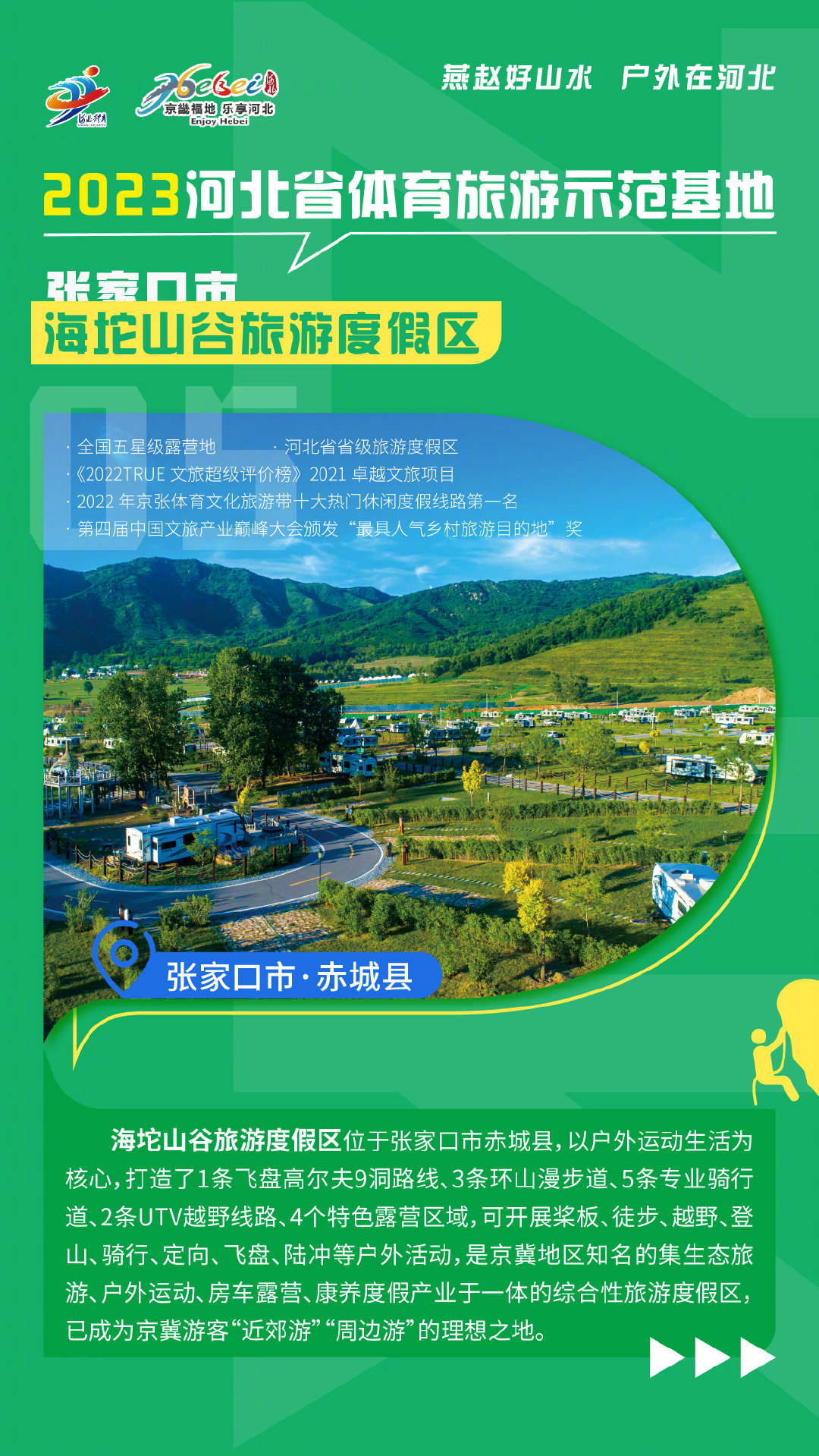 燕赵好山水,户外在河北。日前,河北省体育局会同河北省文化和旅游厅组织开展的2023年“河北省体育旅游示范基地”和“河北省体育旅游精品线路”申报认定工作顺利结束,并于2023年12月28日印发了命名通知。