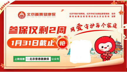 未办理的市民可以关注官方指定投保平台“北京普惠健康保”微信公众号,或通过北京市政务服务平台“京通”小程序,两种途径线上投保,亦可通过中国人民保险、中国人寿、泰康、太平洋保险、中国平安、北京人寿6家保险公司的专业工作人员咨询投保。为避免保障中断,大家在支付时请一并勾选“开通次年自动投保缴费”。参保2024年1月31日截止,保障期限为2024年1月1日至2024年12月31日。