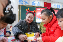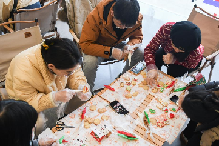 1月13日,湖州市实验幼儿园的老师带着学生在小西街的民俗展示厅认识腊八粥的原料。临近农历新年,老街举办起了内容丰富的市集,让居民和游客体验市井烟火气,营造节日的喜庆氛围。