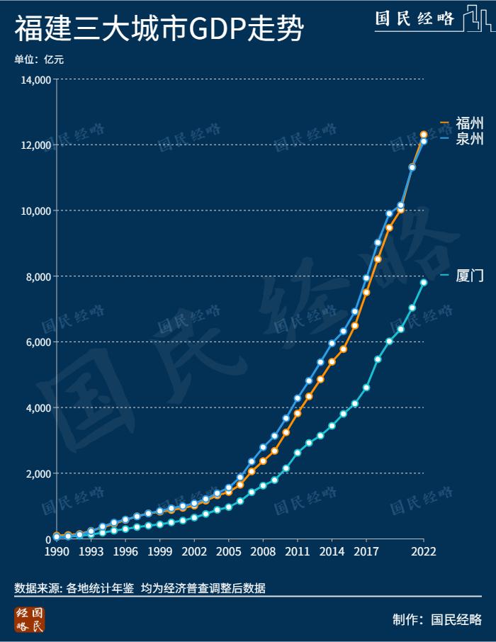 目前,福州、泉州都已迈过万亿大关,厦门正朝着8000亿俱乐部迈进,到2025年有望突破万亿大关。