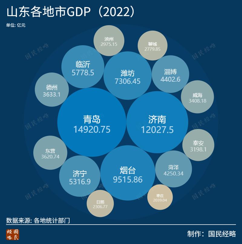 在青岛、济南、烟台之后,潍坊正在向着8000亿俱乐部进军,临沂、济宁向着6000亿迈进,这都是万亿城市的后备力量。