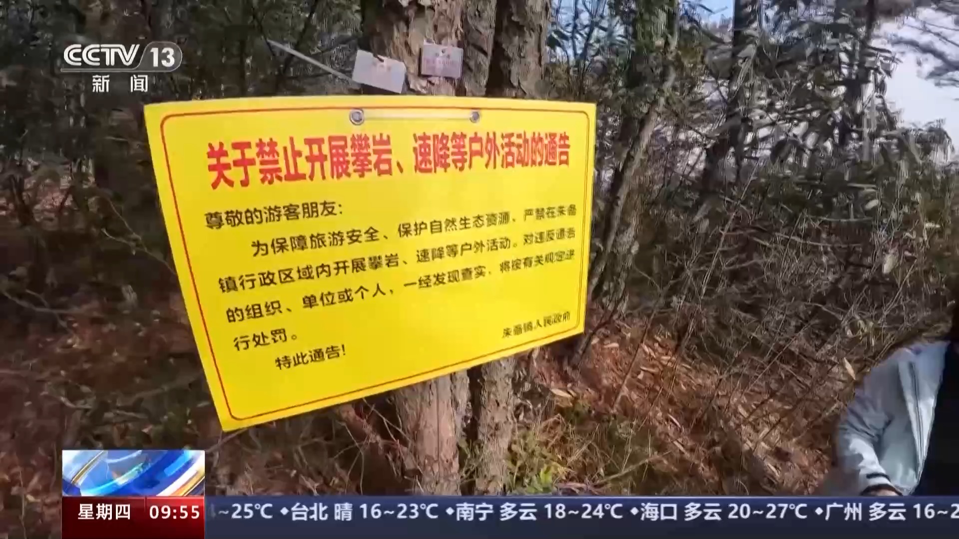 九华山环境资源保护处自然保护地管理科负责人张超:根据《九华山风景名胜区管理条例》规定,对擅自进入未开发区域进行游览活动,擅自进行探险、攀岩等影响景区资源安全和人身安全的活动,由管委会责令改正,拒不改正的,可处以警告或者一千元以上三千元以下的罚款。