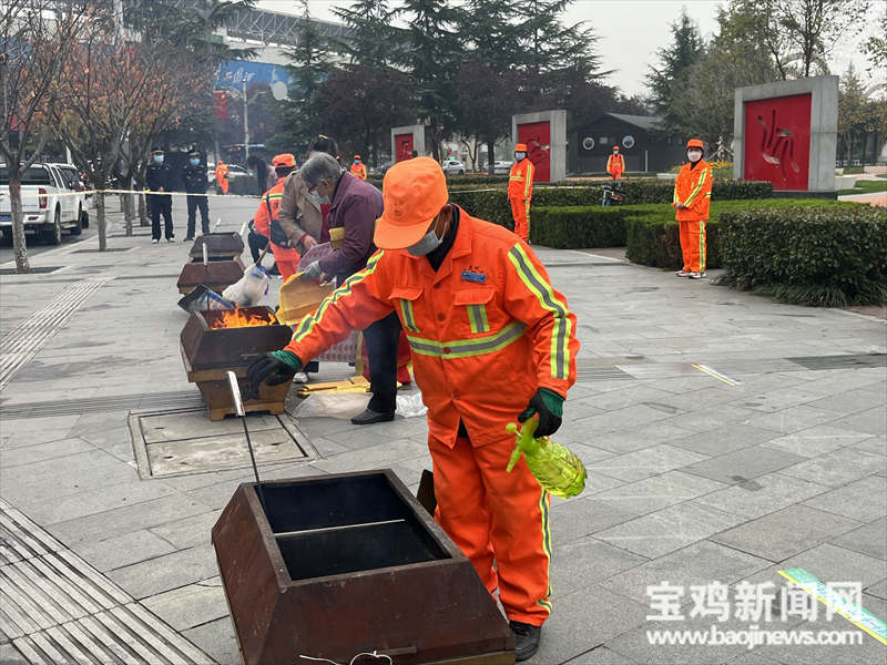 (宝鸡新闻网 罗君)10月25日,记者在石坝河体育场转盘东北角处的祭祀点位看到,原本普通的“一米线”被“一线多用”,变身成为“文明祭祀宣传线”和“垃圾分类宣传线”,前来祭祀的市民按照一米线要求,有序排队,文明祭祀。