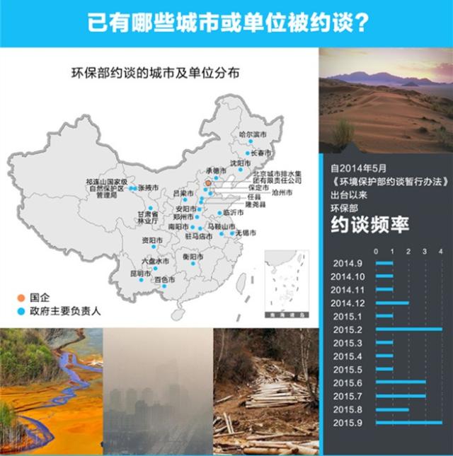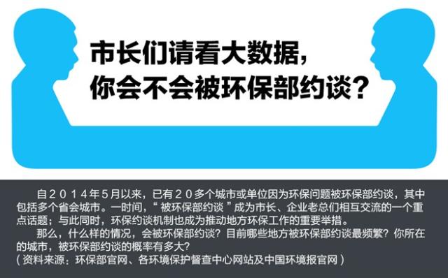 那么,什么样的情况,会被环保部约谈?目前哪些地方被环保部约谈最频繁?你所在的城市或单位,被环保部约谈的概率有多大?新华社“中国网事”记者对已经被环保部约谈的城市和单位进行了大数据梳理,或许可以给市长、企业老总们一些借鉴。