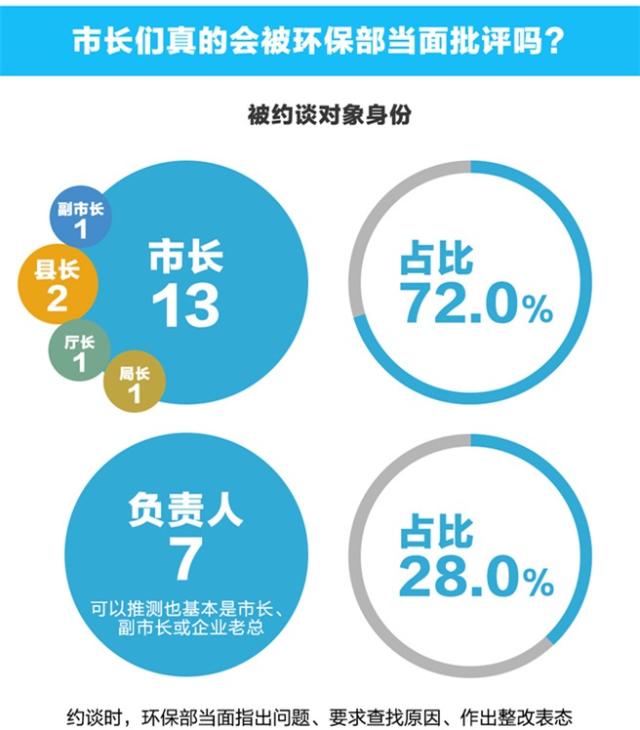 被环保部约谈时,市长们亲自到场,被环保部当面指出问题、要求查找原因、作出整改表态。
