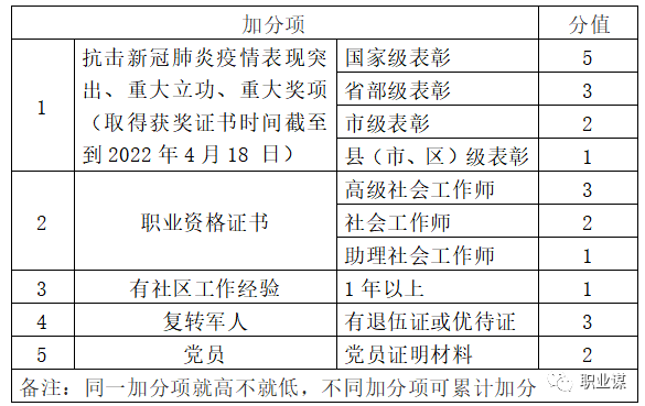 优先事项设置一定分值的加分项,经审核,符合相关要求的考生可在笔试成绩中获得相应加分,具体加分项如下表: