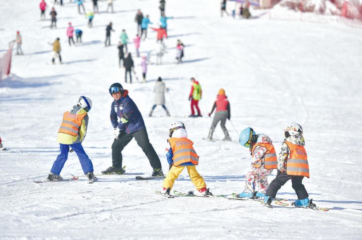 孩子们在石家庄清凉山滑雪场滑雪。