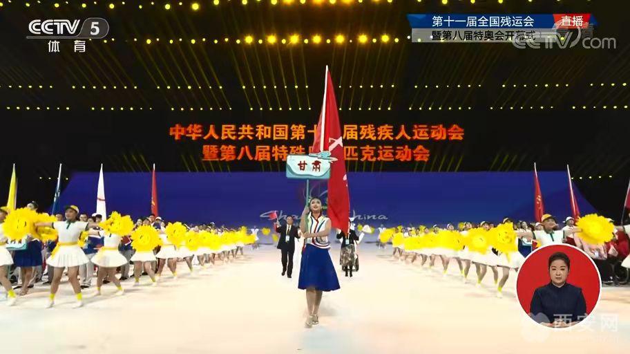10月22日晚,全国第十一届残运会暨第八届特奥会开幕式在西安奥体中心体育馆隆重举行。甘肃省代表团入场。