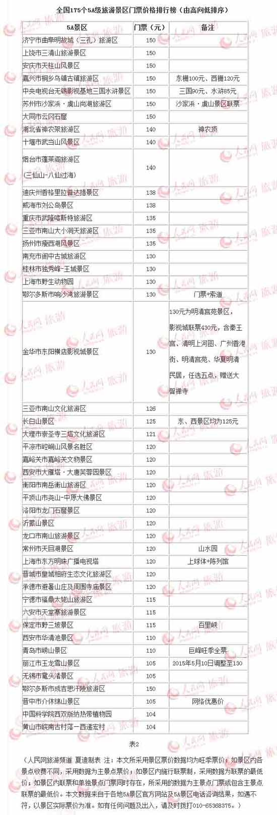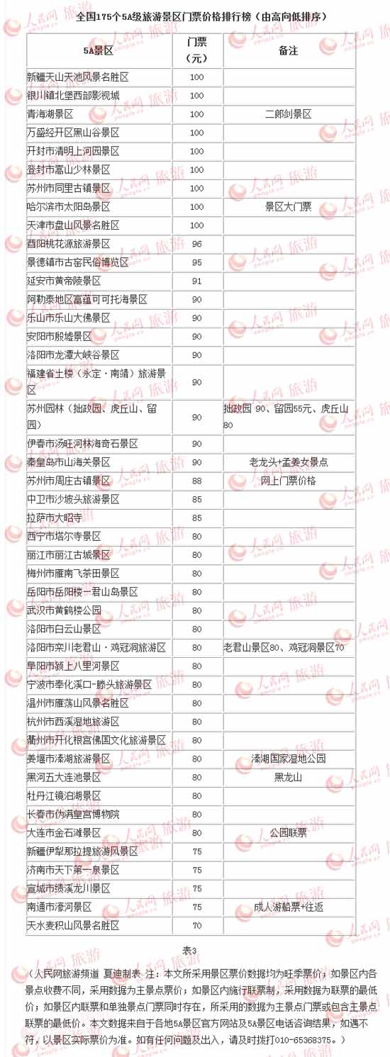 转载自人民网 (记者:夏迪)十一国庆黄金周即将来临,近日媒体有关5A景区节前涨价的多篇报道也使公众对景区门票的关注度迅速提升。记者就此统计了全国175个5A级旅游景区(以下简称5A景区)门票价格,数据显示,全国5A景区门票均价已达108元,其中免费景区为15家。