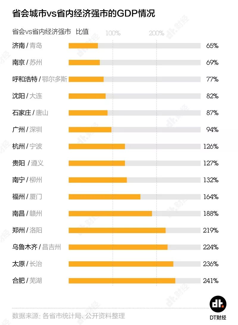 部分省会城市的失势,可能更多要从Ta们作为一省龙头的经济落差说起。