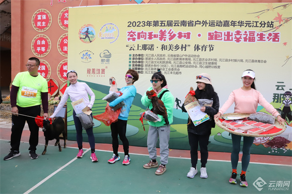 为确保比赛安全、顺利进行,工作人员还在沿途设置了物资补给点,让参赛选手在健跑过程中,体验哈尼乡村的贴心服务,感受哈尼人民的热情好客。经过激烈角逐,健康跑决出了名次,而奖品可谓是“村”味十足,十分接地气,有跑地山羊、土鸡、土鸭、大鹅、梯田红米、猪街茶等,均是那诺乡充满地域特色的农特产品。