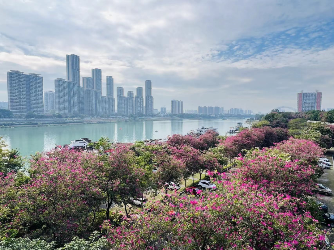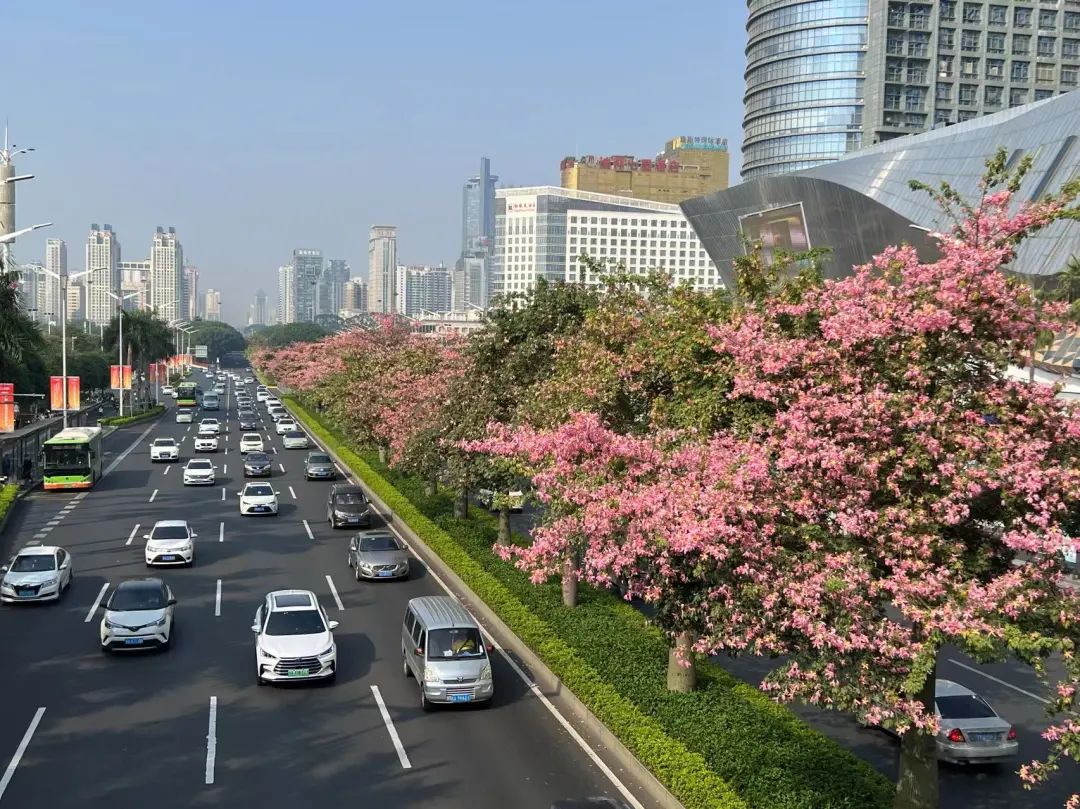 目前,新民立交上花池的朱槿、民族大道凤岭立交上的朱槿球在陆续开放,民族大道会展航洋城中分带美丽异木棉,东盟文化园后排绿地、江北大道的红花羊蹄甲、佛子岭边坡的三角梅,青环路分车带的粉花夹竹桃仍在花期中,其中,美丽异木棉花期还有一个月左右,红花羊蹄甲花期还有两个月左右,三角梅花期还有四个月左右,粉花夹竹桃花期还有半个月至一个月。