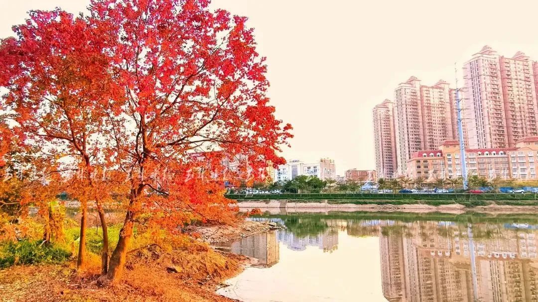 此外,玉林市人民公园公园里的枫叶已经换上了“红妆”,在阳光的映衬下闪耀着惹眼的橘红色。文化广场的枫叶也变成金黄色,一些叶子已经变成红色,为广场增色不少。