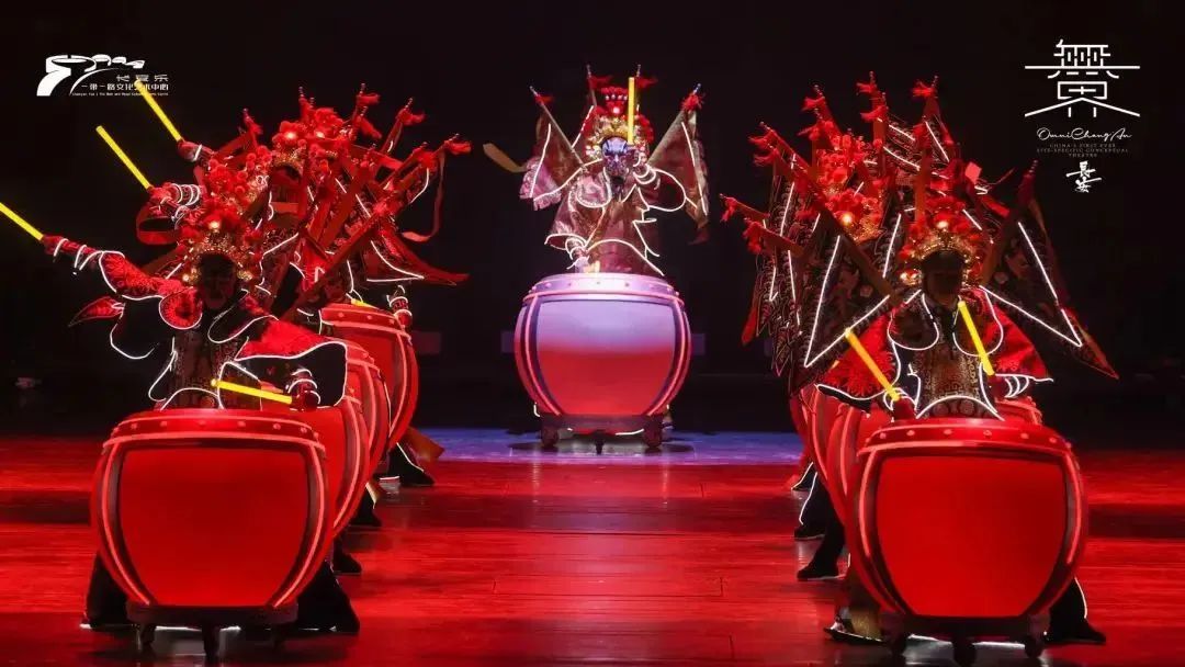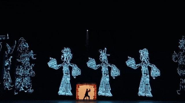 秦腔一声吼,穿着发光戏服的演员擂鼓阵阵,投影将整个剧院变成宫阙万千,在惊艳炫目的视觉特效中领略千年古都与昔日丝绸之路的风韵与光彩。
