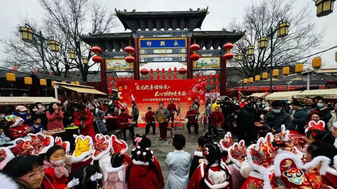 1月20日,“‘金龙迎春话传承 匠心独韵暖长安’2024迎新春非遗年俗体验活动”亮相西安永兴坊。