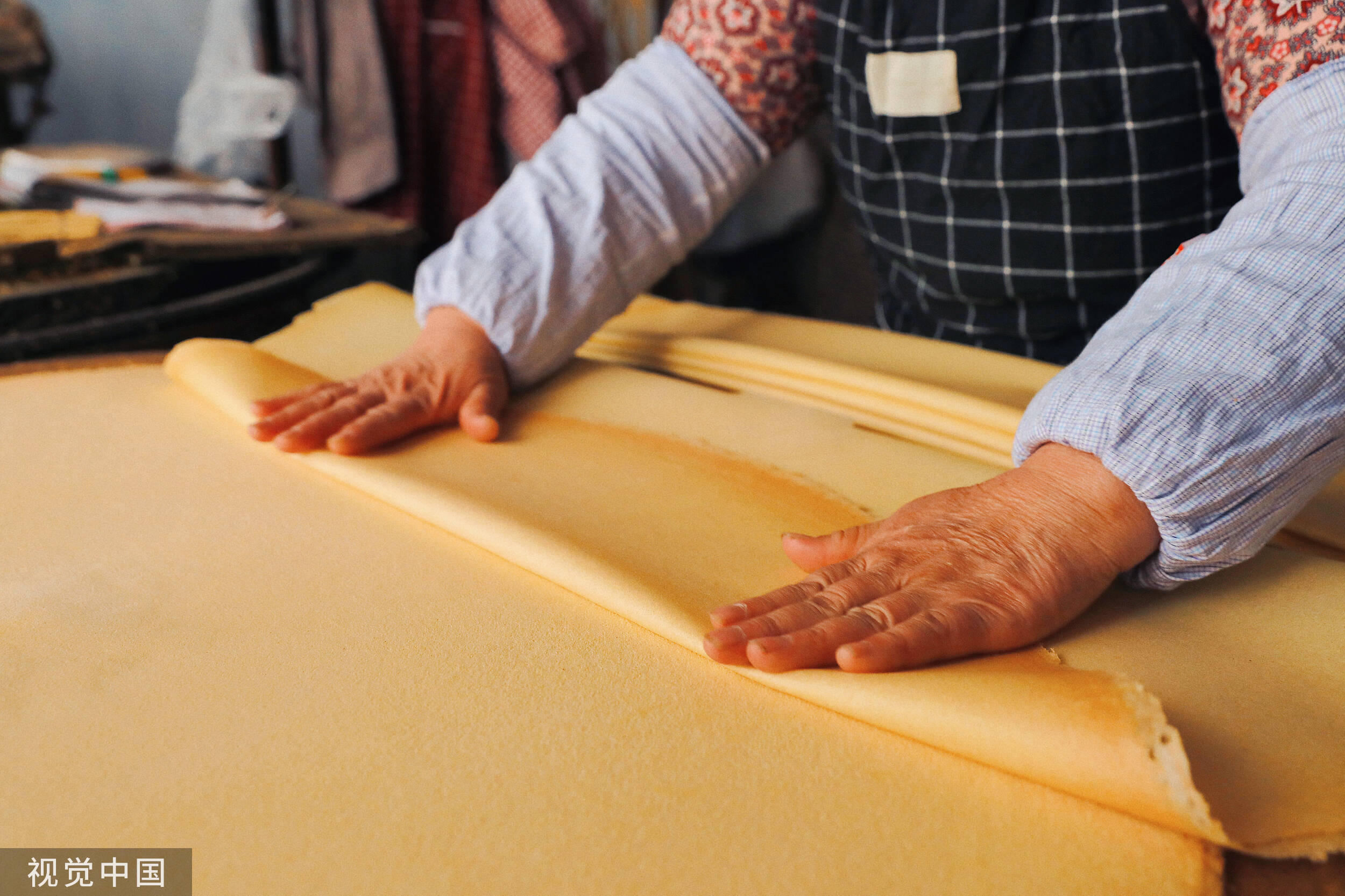 山东煎饼作为传统特色美食,薄软如纸、柔韧适口,味道美、易搭配,素有“一张煎饼卷天下”的美誉。泰安煎饼是山东煎饼的代表,品类多、质量优,在市场上享有很高声誉。在泰安流传着这样一句民谚:吃煎饼一张张,又卷豆腐又抿酱,个个吃得白又胖。