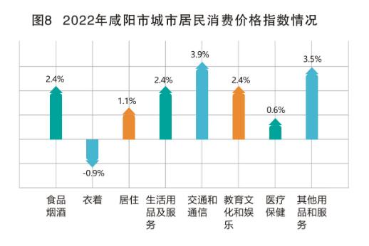 全年城市居民消费价格总水平比上年上涨1.9%。其中,食品价格上涨2.4%、非食品价格上涨1.8%。分类别看,食品烟酒价格同比上涨2.4%,居住上涨1.1%,生活用品及服务上涨2.4%,交通和通信上涨3.9%,其他用品和服务上涨3.5%,教育文化和娱乐上涨2.4%,医疗保健上涨0.6%,衣着下降0.9%。