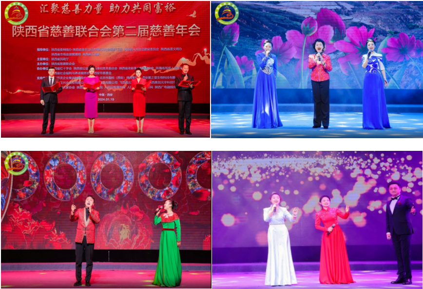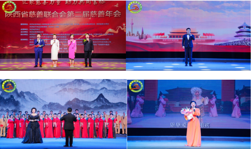 省慈善联合会名誉会长、文化艺术专业委员会主任、著名艺术家冯健雪和安金玉、侯红琴、沙莎以及西北工业大学教授合唱团等为年会献上了精彩的文艺演出。