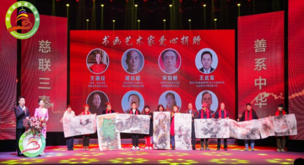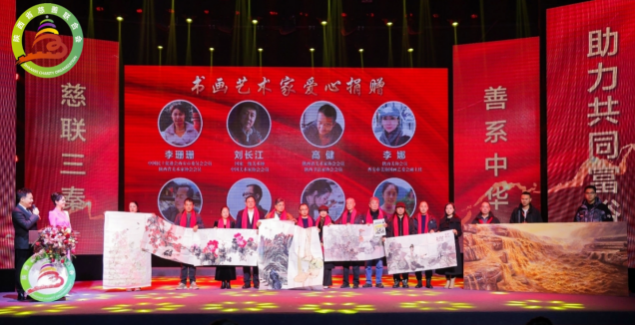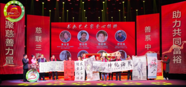 西安市美术家协会、陕西美中油画雕塑院以及杨霜林、王国征、李新平、张山、吴元登、马永发、张龙等代表60位著名书画艺术家向省慈善联合会捐赠了书画作品。