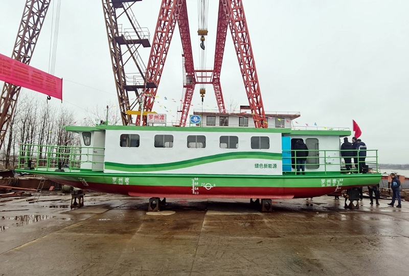 1月19日,黄山市第一艘新能源渡船“罗州渡”在铜陵市枞阳县帆华船厂建成。