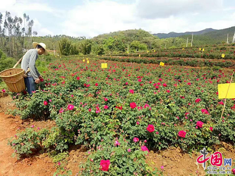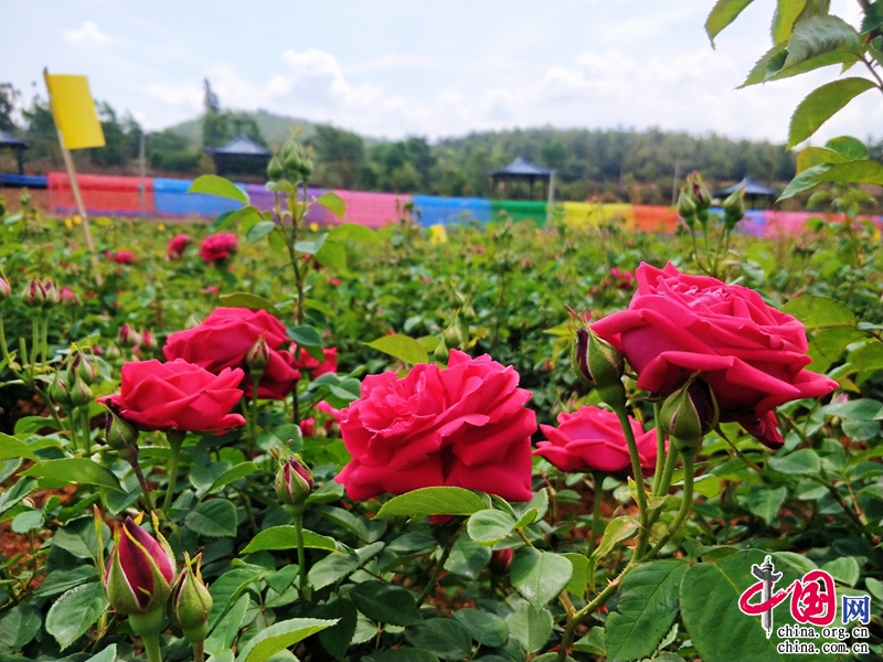 高黎贡山下的腾冲市界头镇桥头村刘家寨80亩的玫瑰庄园,每年的4月中旬至6月初,那连片集中的可食用的玫瑰花儿,盛花期正值五一小长假。