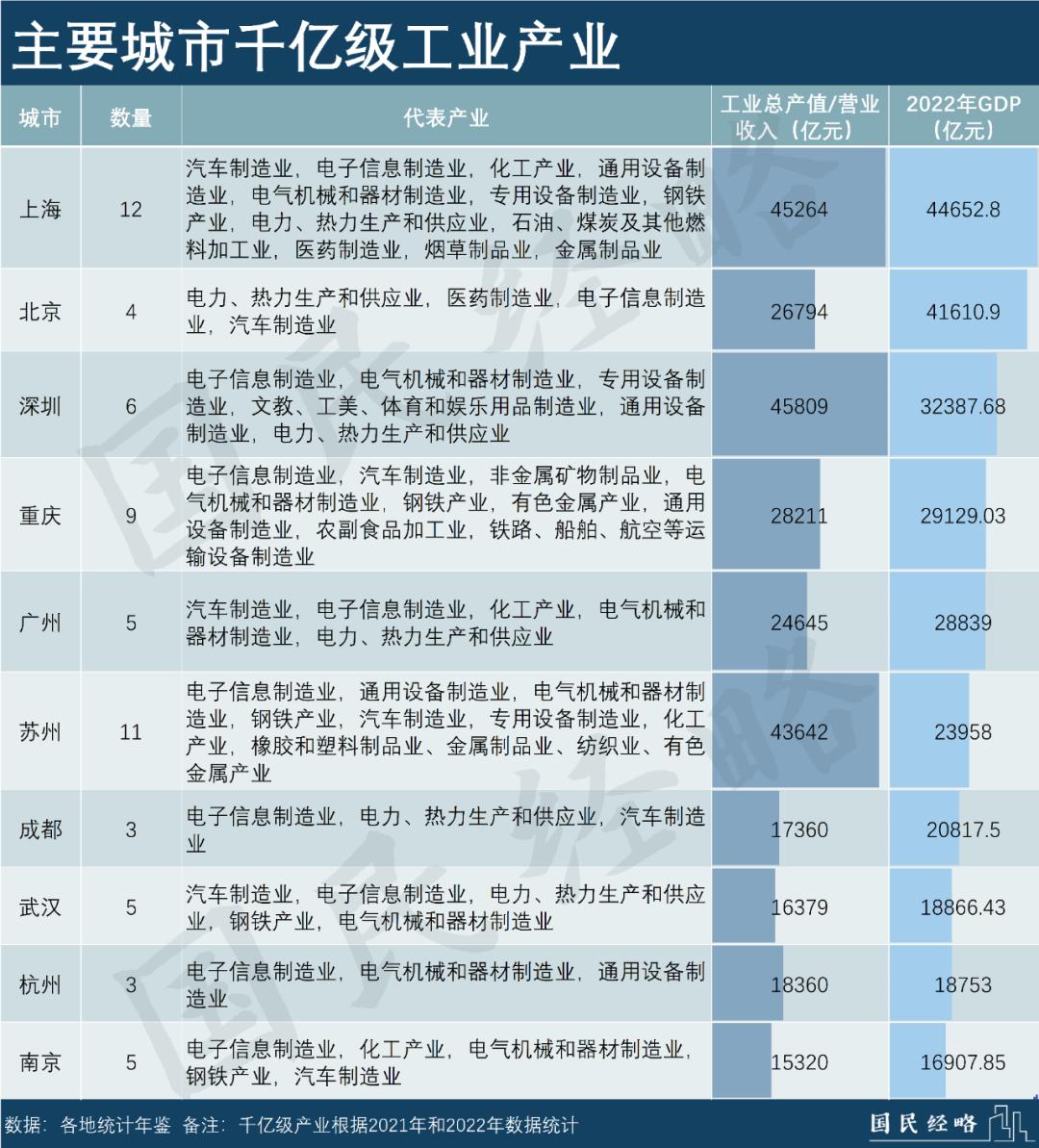 衡量一个城市的制造实力,最直观的指标无疑是主要工业品的分布。
