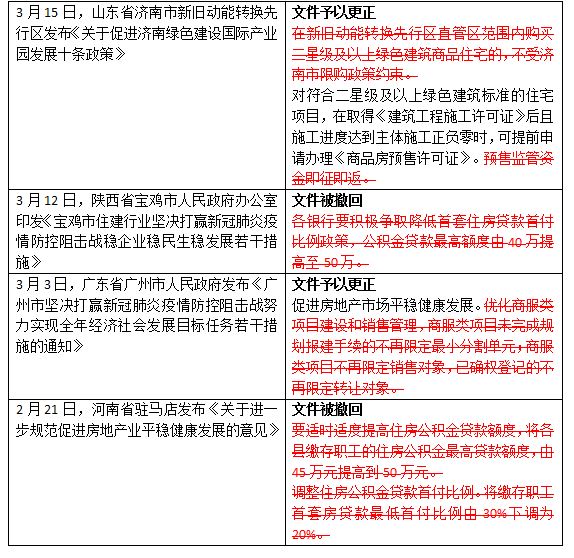 据澎湃新闻()不完全统计,截至目前,已有河南省驻马店市、广东省广州市、陕西省宝鸡市、山东省济南市、浙江省海宁市、山东省青岛市六个城市先后在发布放松房地产调控政策后,进行修改删除或撤销,各地楼市政策现“一日游”的情况。