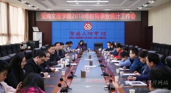 【宝鸡文理学院】10月16日,宝鸡文理学院在新校区图书馆801会议室召开2018年教育事业统计工作会,学习贯彻落实中省有关教育事业统计工作系列精神,总结2017年统计工作,安排2018年工作任务。该院副校长杨子元出席会议并讲话。该院党政办公室主任任红亮主持会议。