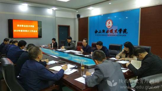 【陕西铁路工程职业技术学院】近日,陕西铁路工程职业技术学院召开2018年教育统计工作专题会议。该院院长王津、副院长焦胜军出席了会议,教育统计工作领导小组成员及相关教育统计工作人员参加了会议。会上,党委(院长)办公室主任段东旭传达了陕西省教育厅关于2018年教育统计工作文件精神,明确了该院教育统计工作领导小组的职责与分工。教务处处长蒋平江领学了《教育统计管理规定》主要内容、出台背景及重大意义。学生处处长刘?炊?018年统计报表有关指标进行了解释说明。最后,王津结合教育事业统计工作发展的新形势和新要求,强调了教育事业统计工作的重要性与现实意义,并就做好该院2018年教育事业统计工作,提出三点要求:一是提高政治站位和思想认识,将教育统计工作作为事关学院科学管理、科学决策和科学发展的重要性工作来抓,认真组织学习统计法律法规和政策,加强对教育统计人员的专业培训和职业道德教育,深刻理解和准确把握《教育统计管理规定》的精神实质;二是加大宣传力度,在全院范围内利用网站、展板、电子屏、微信、微博等媒介开展统计相关法律法规的宣传活动,不断扩大《教育统计管理规定》影响力,增强全体师生法治意识,牢固树立依法统计观念。三是明确任务分工,夯实工作责任。各部门要指定专人进行数据统计与填报,部门负责人全程跟踪把关,同时部门之间要加强协调配合,数据共享,形成合力,确保统计数据准确可靠,按时保质完成2018年教育事业统计工作。
