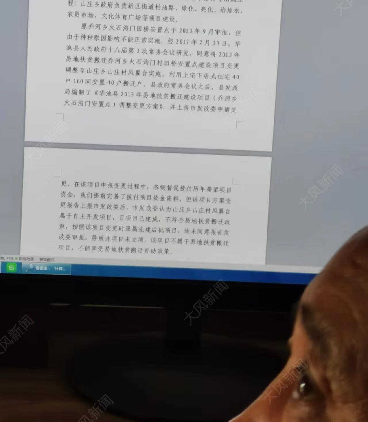鲁先生跟华商报大风记者来到华池县财政局,该局负责人称,他是最近几年才到财政局,2017年的事是上任局长负责的。该负责人耐心听取了鲁先生的反映后,当即打电话向县发改局了解情况。之后该负责人称,发改局答复当年乔河乡火石沟门安置点项目因修路无法实施,初步意见把该指标用于山庄乡山庄村凤翼台项目,2017年上报到庆阳市发改部门时没有得到批准,这政策就没有再实施。