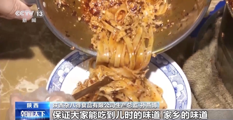 陕西杂八得食品有限公司生产总监 孙燕博:创新点是可以控制发酵时间、发酵温度。我们要求8个小时发酵好,这是通过设备工艺测算出来的最佳发酵时间。通过我们这个发酵的专利技术,保证了擀面皮的口味正宗地道,保证大家能吃到儿时的味道,家乡的味道。