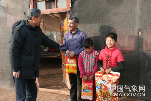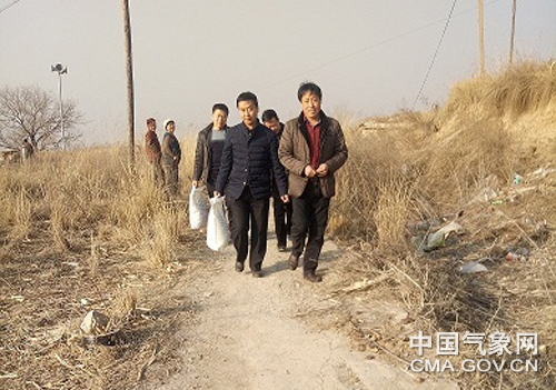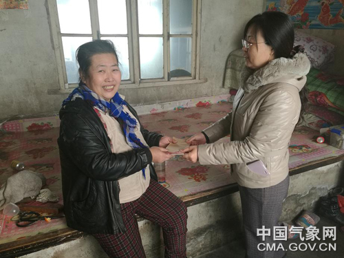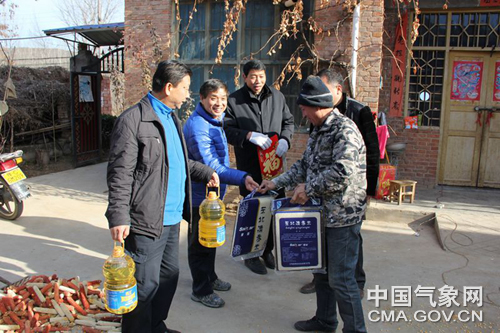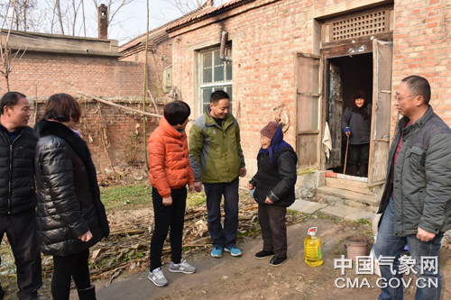 1月24日,唐河气象干部职工到苍台镇闫庄村开展送温暖慰问。