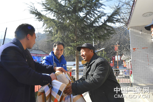 中国气象报通讯员吴剑 赵磊报道 1月13日,陕西省宝鸡市气象局干部职工来到陈仓区石尧村为16户结对帮扶的贫困户为送上棉被、米面油等慰问品。