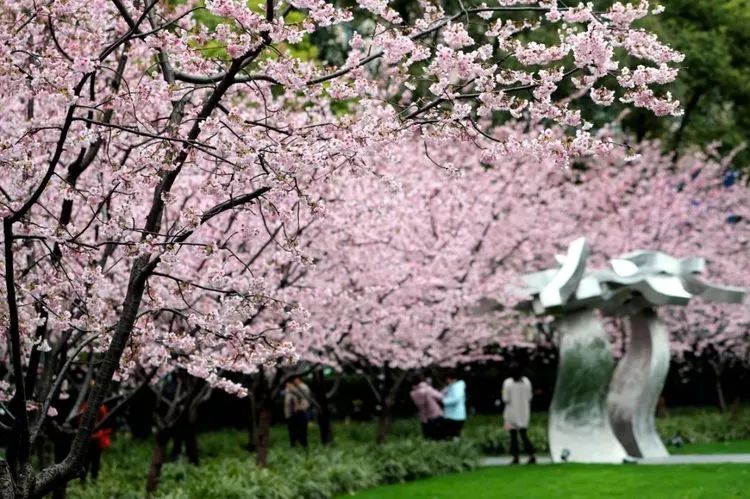 顾村公园的樱花是出了名的,也是上海人赏花常去的公园之一。公园植被丰富,推出了“春赏樱”、“夏赏荷”、“秋赏桂”、“冬赏梅”的四季赏花游。