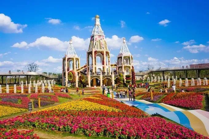 最受欢迎的是如梦幻城堡般的奇迹花园,园内花毯总面积近2万平方米,颜色以少女粉色系为主,花卉总数约10万株。