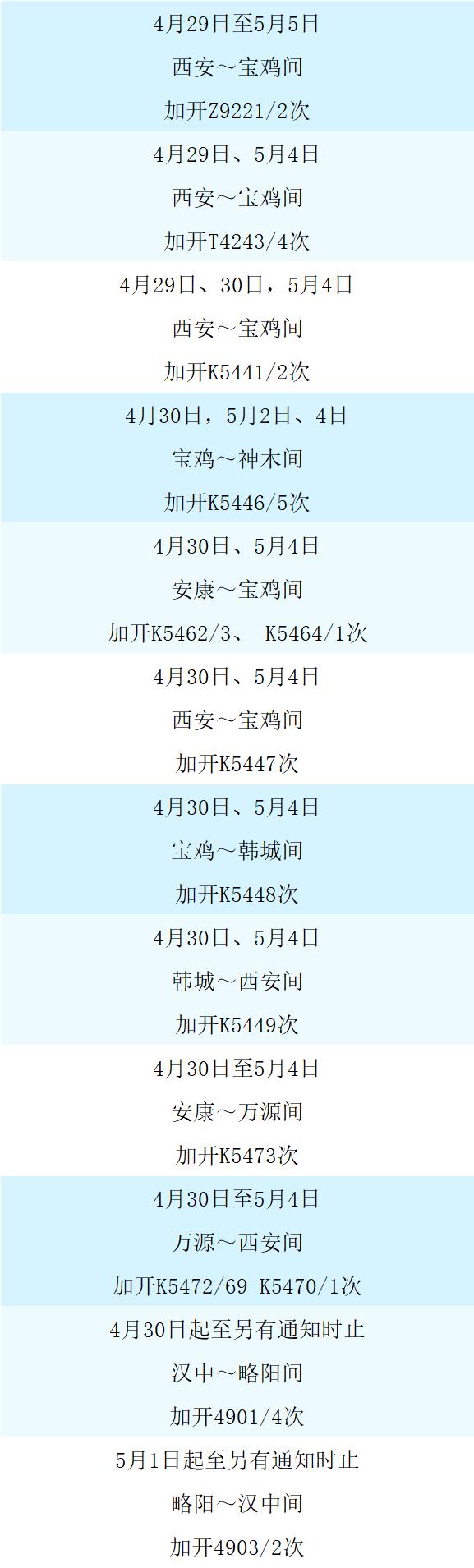 五一期间,陕西多趟列车加开!火车出行政策有变