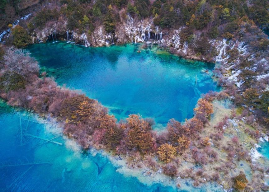 九寨沟位于四川省阿坝藏族羌族自治州九寨沟县漳扎镇,是白水沟上游白河的支沟,以有9个藏族村寨而得名,以翠海、叠瀑、彩林、雪峰、藏情、蓝冰“六绝”著称。沟内分布108个湖泊,有“童话世界”之誉。