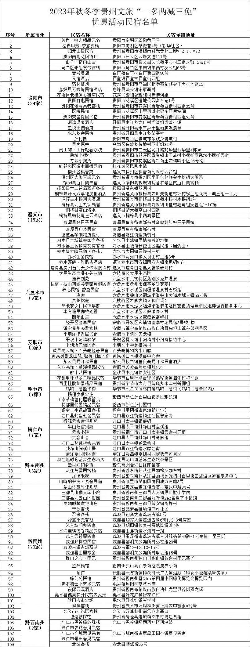 住宿优惠,贵州省内参与优惠活动的部分酒店、民宿实行挂牌价折扣优惠;自驾优惠,入黔旅游的外省籍一型客车(私家车)使用ETC电子支付方式每周周五(00:00后)、周六、周日(24:00前)在贵州境内高速公路任一收费站出站的,享受贵州境内高速公路通行费减半优惠。