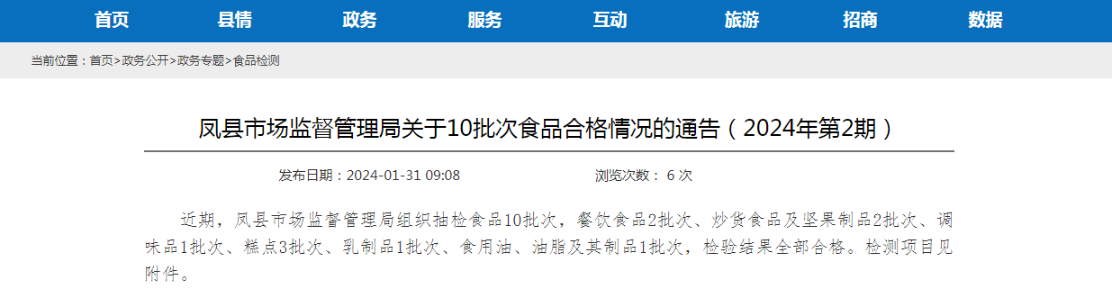 凤县市场监督管理局关于10批次食品合格情况的通告(2024年第2期)