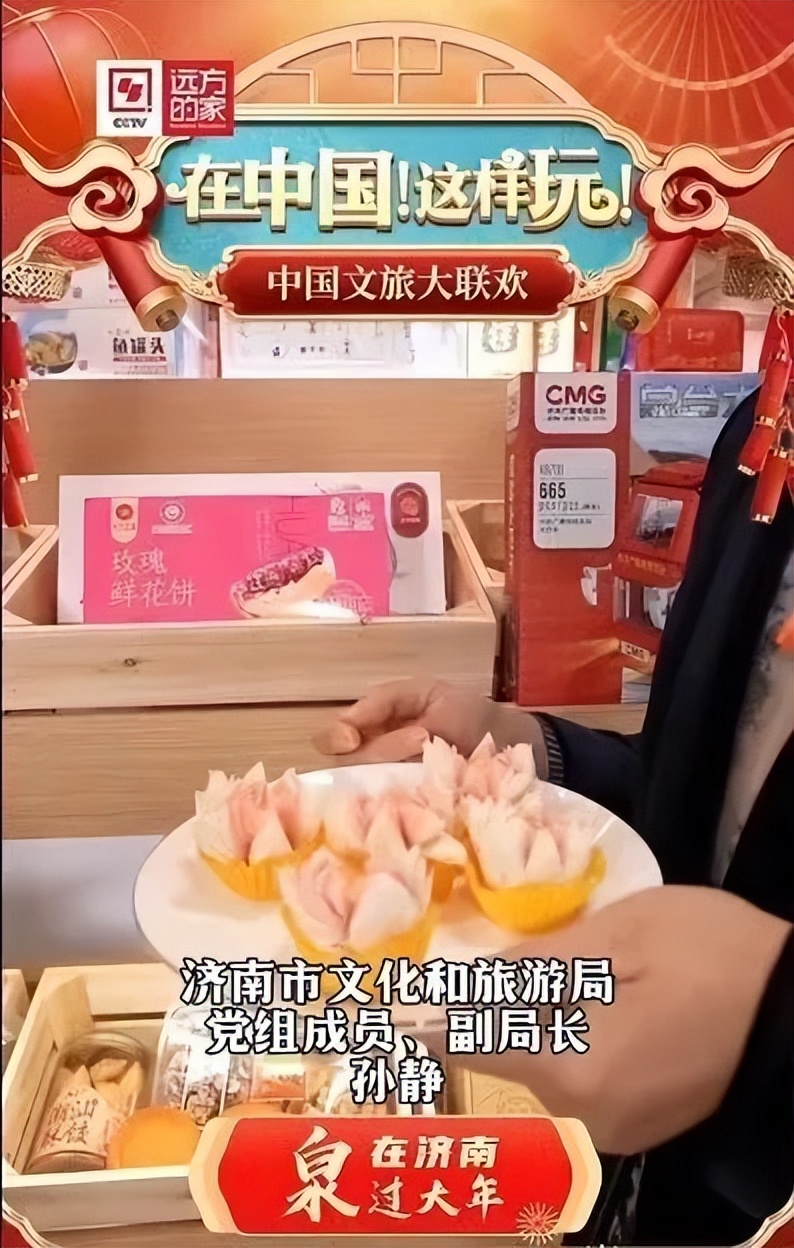 济南特产平阴玫瑰鲜花饼、荷花酥寓意“荷谐玫好”,给新春佳节带来美好祝福。