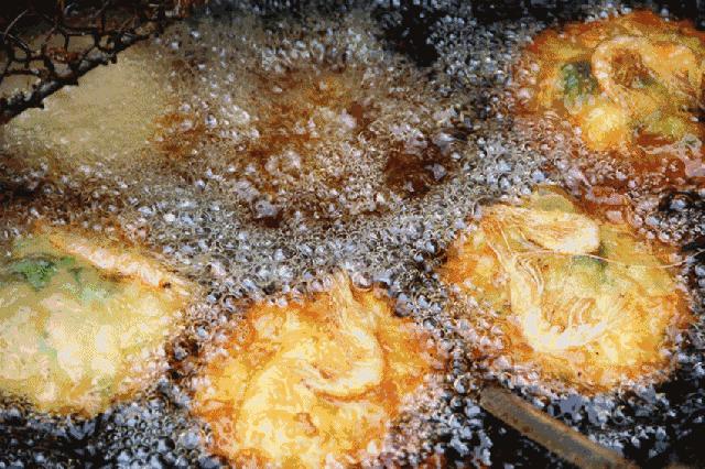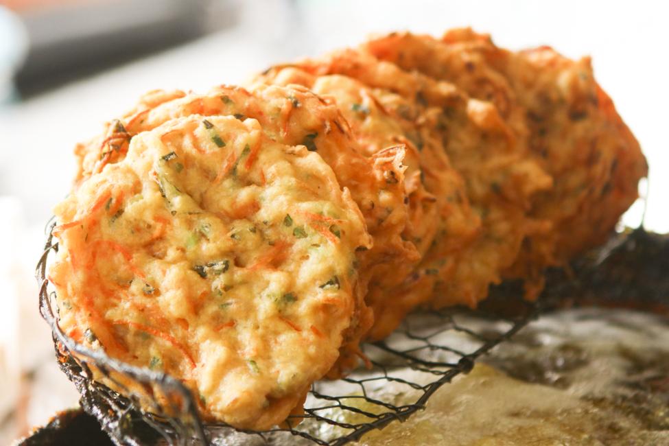 白萝卜刨成丝,加入鸡蛋,拌入葱末,调味搅拌均匀。面粉加水,调成偏稀的面糊,倒入模具,铺上萝卜丝,再浇上一层面糊。入油锅慢炸,待其慢慢飘起,外表呈黄褐色后,捞出沥油。金黄油亮,奇香四溢。刚出锅的菊花糍在酥脆的表皮之下,藏着烫口的柔软。沸腾的不只是味觉,还有记忆里质朴的东台味道。一口乡味,一段回忆,菊花糍溢出的香气,包含着东台悠久的温暖,直抵人心。