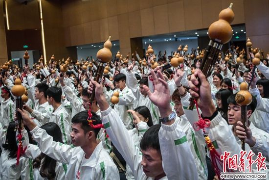 1月7日,广东省顺德,2016年学生喜爱的大学校长颁奖会现场,来自顺德职业技术学院师生进行葫芦丝表演。中国青年报·中青在线记者 赵迪/摄