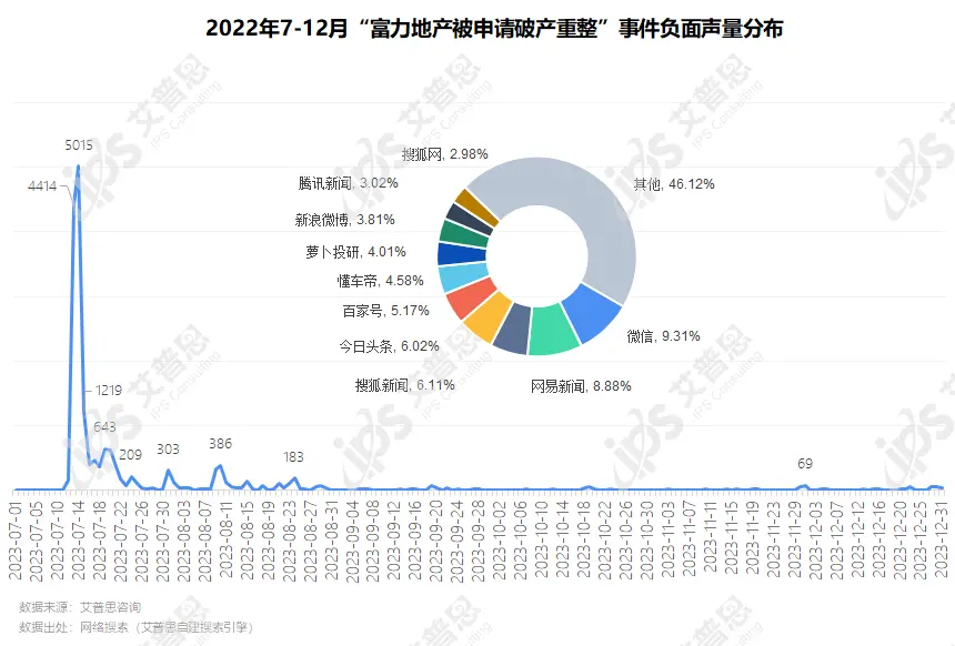 图4:2023年7-12月“富力地产被申请破产重整”事件负面声量分布