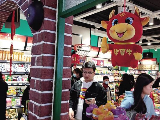 2月5日,在位于西安市小寨的购物中心,市民正在购买年货。