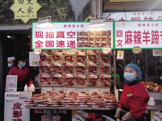 2月5日,在西安市回民街,一家特产店承诺商品可通过快递迅速邮寄到全国各地。