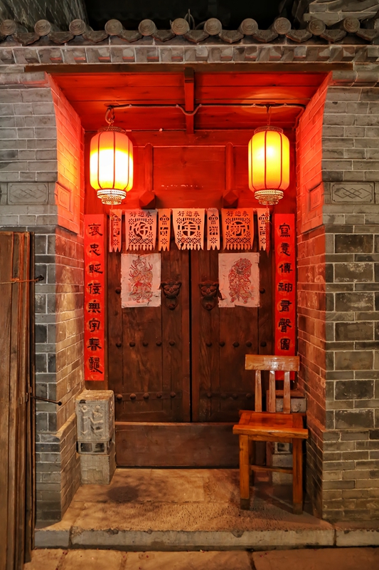 以木、砖、石等雕刻而成的飞檐翘角、楼阁窗棂,